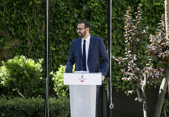 El acto comenzó con el izado de las banderas de Europa, España y Castilla-La Mancha, realizados respectivamente por Kathrin Sundermann, en representación de los alumnos Erasmus; el eurodiputado Sergio Gutiérrez; y la directora general de Relaciones Institucionales y Asuntos Europeos, Virginia Marco. A continuación cada uno de ellos pronunció un discurso en el que valoraron la importancia de la Unión Europea para la sociedad actual.